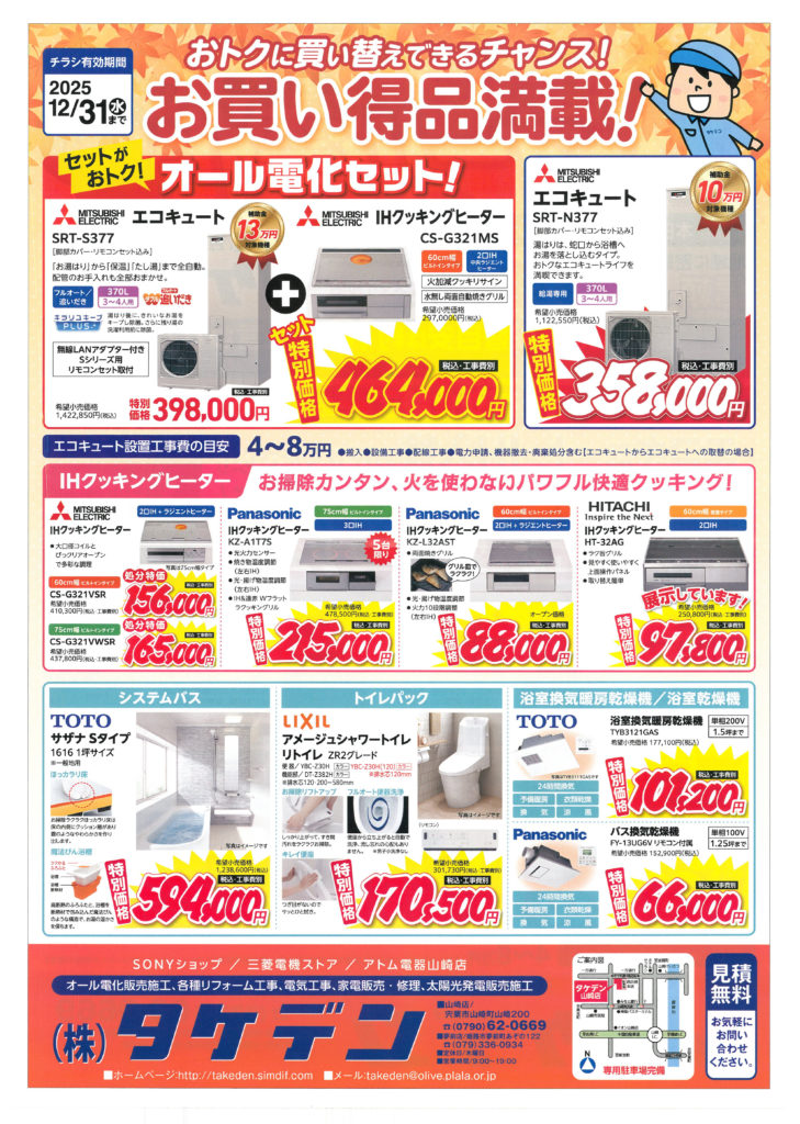 本日は、只今開催中の 「秋のオール電化フェア」 についてご案内いたします。